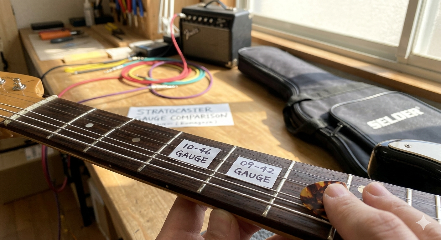 以前記事でストラトを10-46から09-42の弦に変えたことを記事にした。変えた理由はチョーキング(ベンド)をする時に、指がとても痛かったからだ。