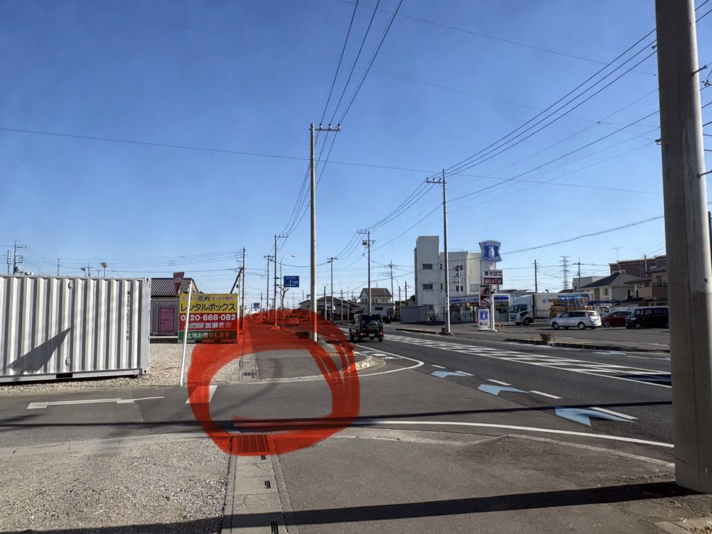 ①最寄りのコンビニ「ローソン熊谷上之店様」を左に進んで、ローソンさんを通りすぎたら、一つ目の小さな交差点(信号機ない)右に入ります。※右に曲がる